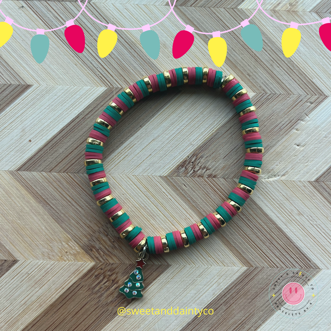 Maroon, Gold and darker Christmas green with a green tree and red star charm