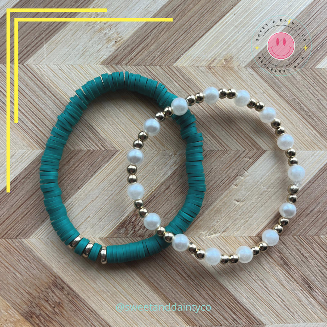 This duo is beautiful, the gold with the pearl band pairs well with any bracelet stack.