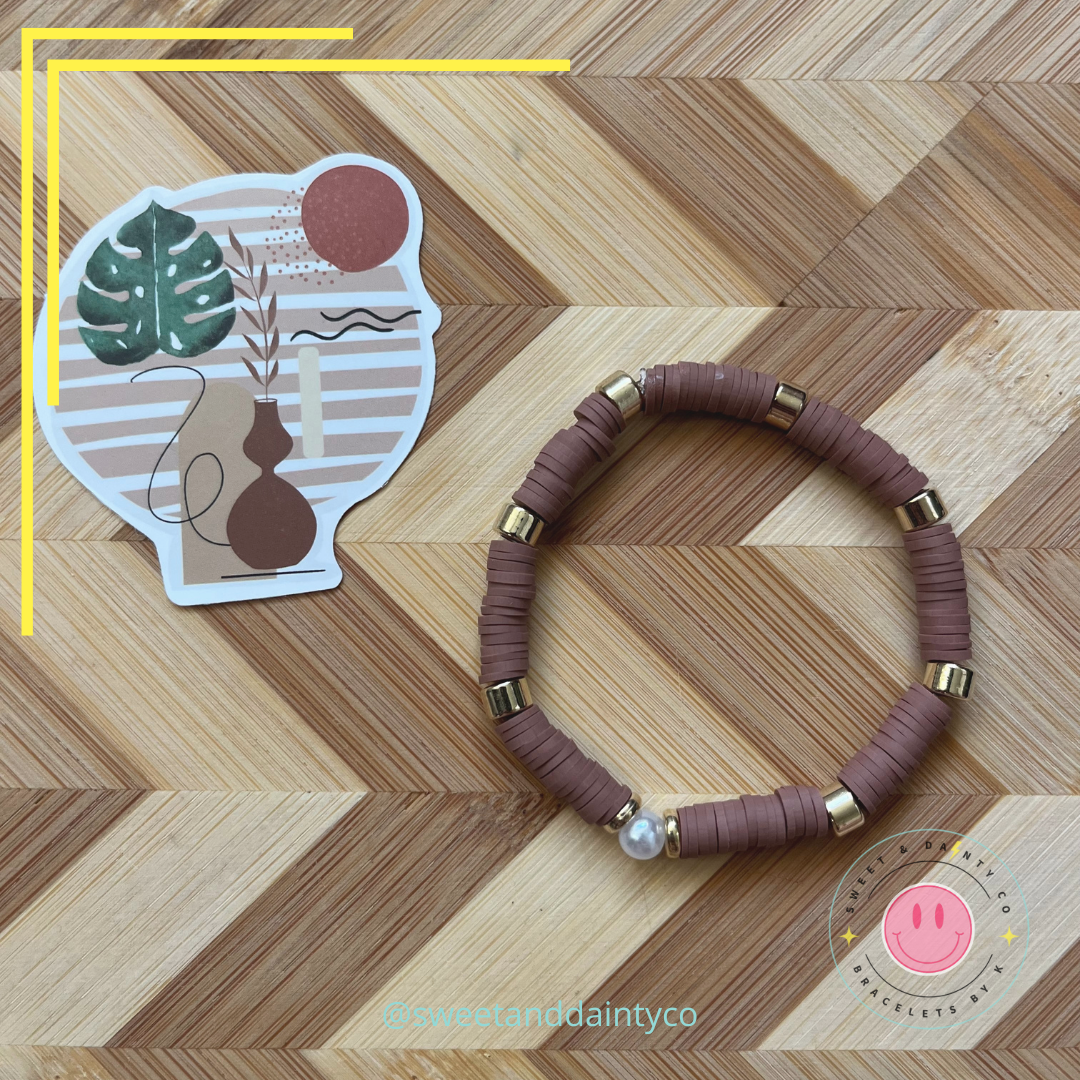 Soft brown with chunky gold accents to add a little elegance and spice up our usual dainty pearl collection.