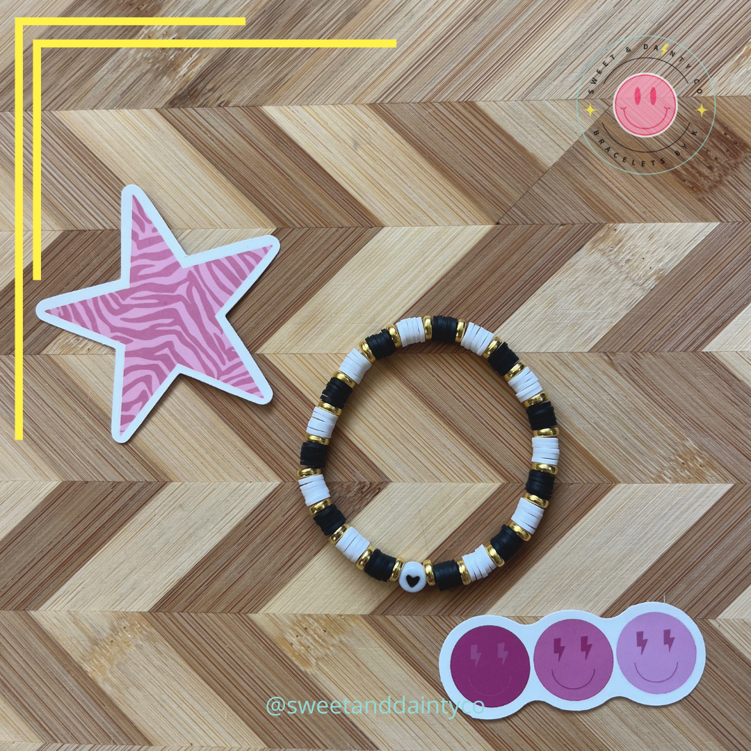Black and White duo mixed with gold accents in between and a sweet dainty black heart in the center.