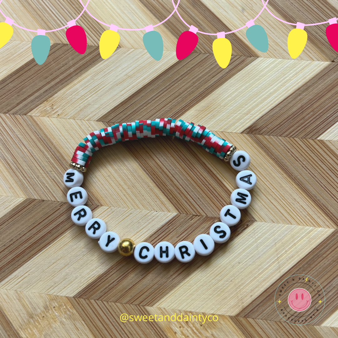 Red/Green/White speckled with gold accent and black and white lettering "Merry Christmas"