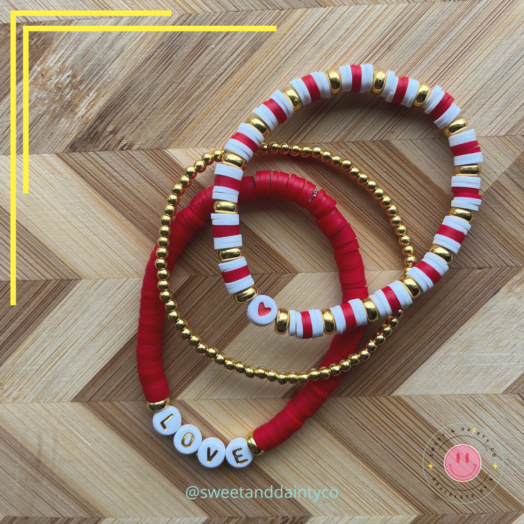 A beautiful red band with gold accents and the word "Love" in gold