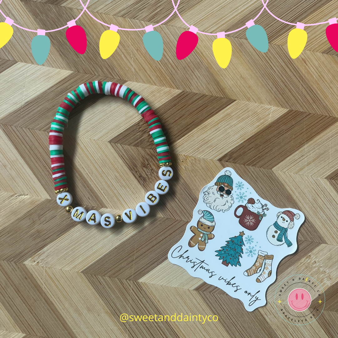 Xmas Vibes - Gold lettering with Gold accent and a mix of Christmas green, red and white