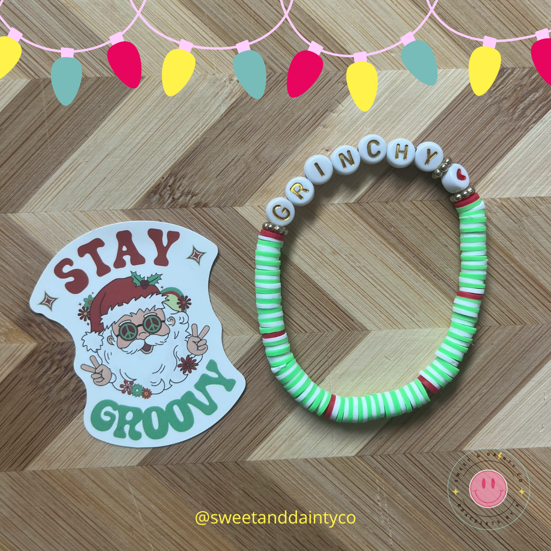 Mr. Grinchy - lime green, white, and red